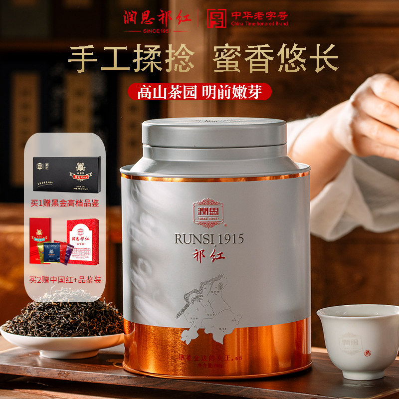 润思祁门红茶官方旗舰店正宗安徽祁红特一级香螺毛峰送礼盒200G