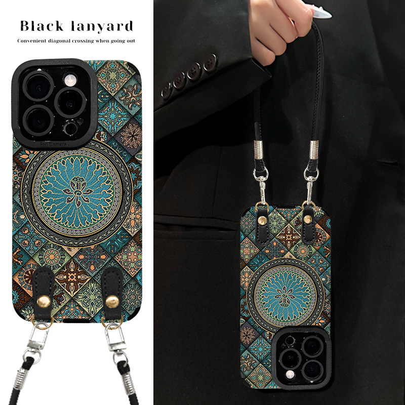 图腾莲花适用苹果14Promax手机壳15Plus高级感16Pro暗黑风iPhone13女款12全包11贴皮X磨砂XS防摔8/7不会撞壳