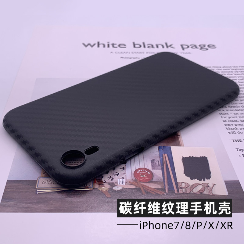 适用苹果x碳纤维纹理手机壳全包xr磨砂保护套8plus黑色7p硬壳薄款