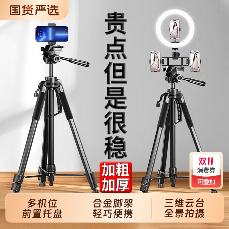 手机支架直播落地三脚架自拍杆便携2025新款补光灯拍照神器多功能拍视频全套设备户外落地式加粗加厚支撑架子