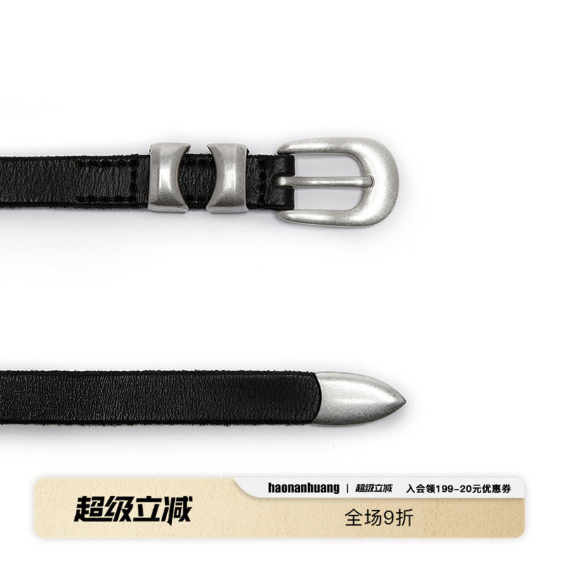 【小鬼同款】haonanhuang头层牛皮做旧哑光镀银扣头复古皮带