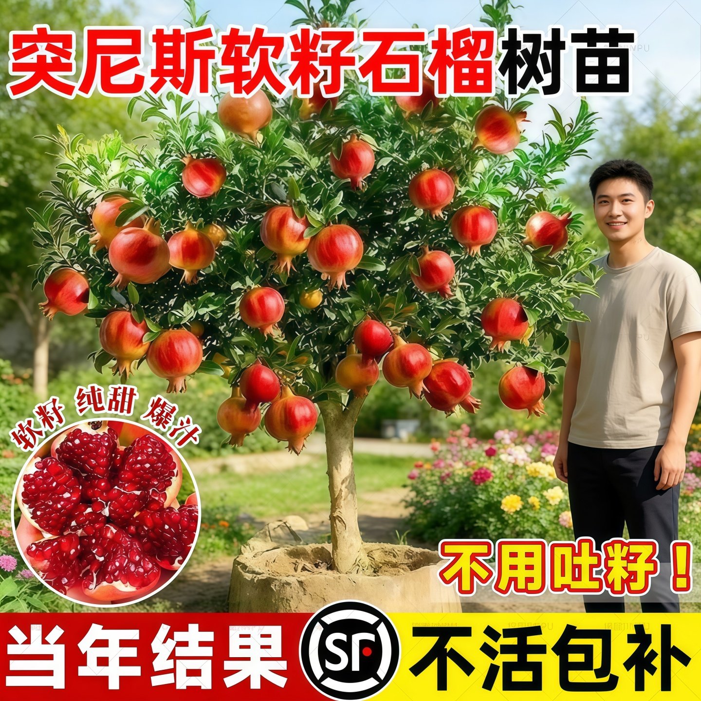 突尼斯软籽石榴树树苗庭院地栽无籽甜石榴果树果苗南北方盆栽种植