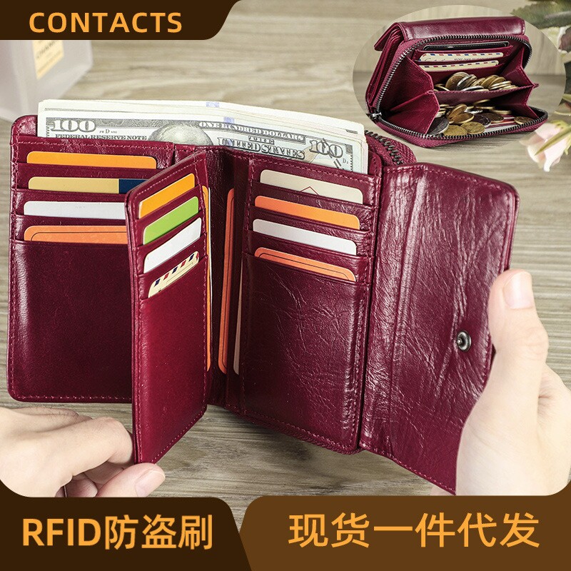 - 钱包女短款 真皮 超薄