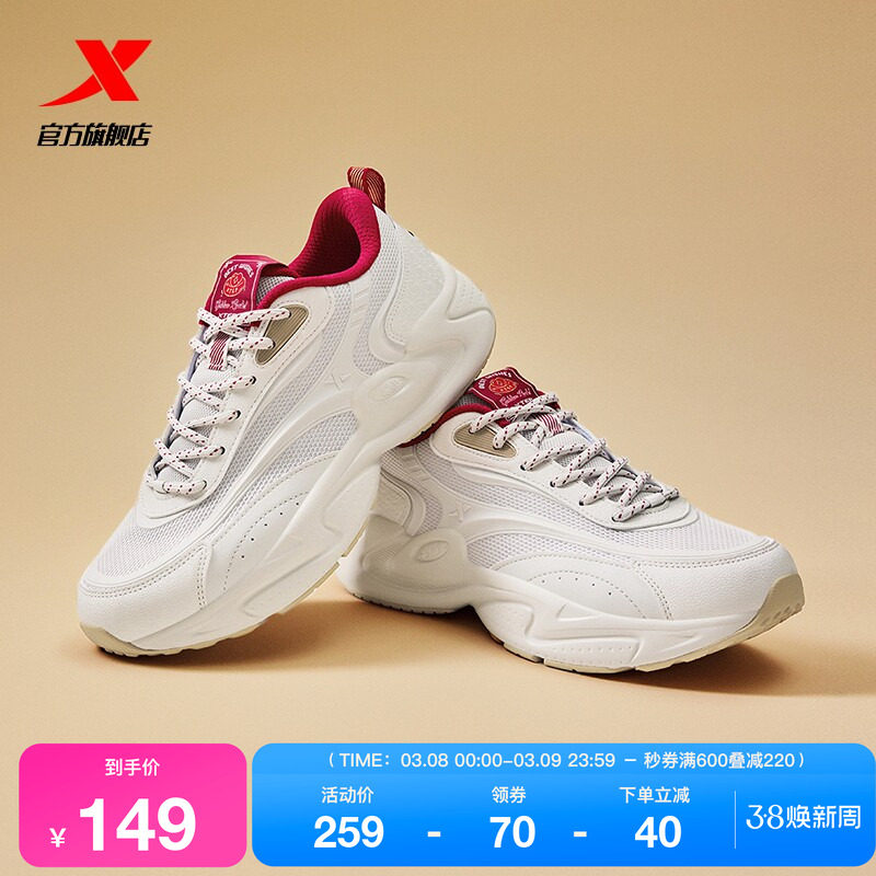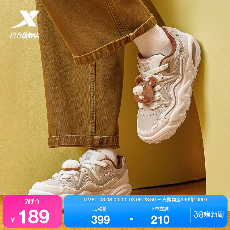 特步萌仔鞋丨女鞋板鞋2026春季新款革面厚底运动鞋老爹鞋休闲鞋子