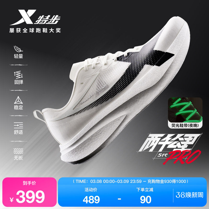 特步两千公里5代PRO丨跑步鞋男鞋运动鞋无板跑鞋减震耐磨女鞋五代
