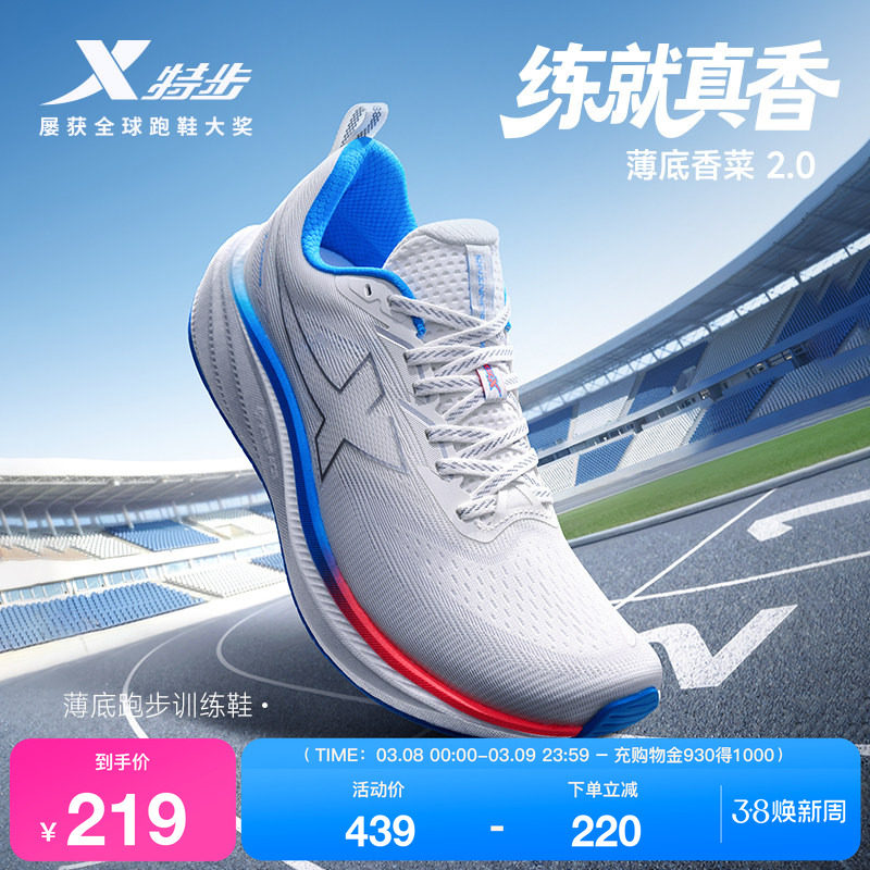 特步薄底香菜丨跑步鞋男春季路跑鞋运动鞋赤足楦低坡差训练跑女鞋