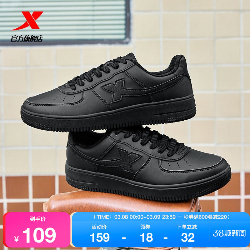 特步空军一号板鞋小黑鞋女鞋2026春季百搭休闲鞋潮流男鞋运动鞋子