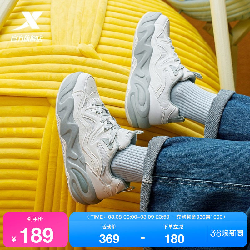 特步星火休闲鞋女鞋夏季革面正品厚底轻便运动鞋复古跑步鞋老爹鞋