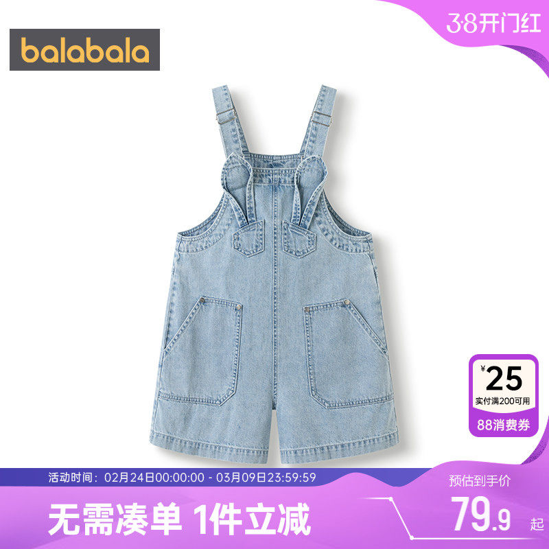 巴拉巴拉女童牛仔背带裤中大童宝宝裤子夏季新款童装儿童全棉短裤