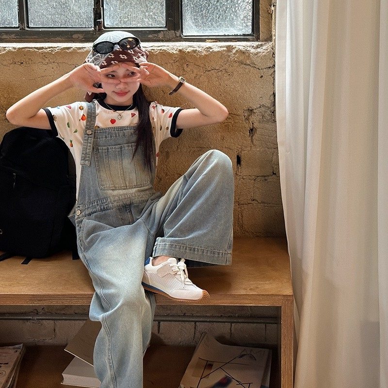 女童牛仔背带裤春秋2025新款儿童多巴胺穿搭套装女孩大童裤子宽松