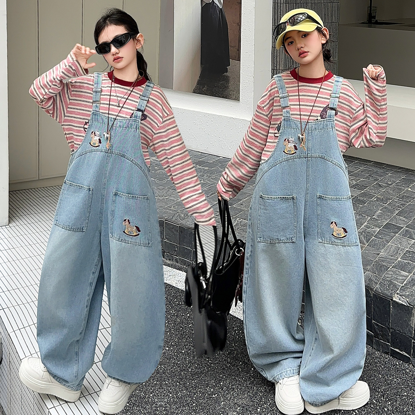 童装女童牛仔背带裤超软面料2025新款洋气时髦宽松休闲百搭表演服