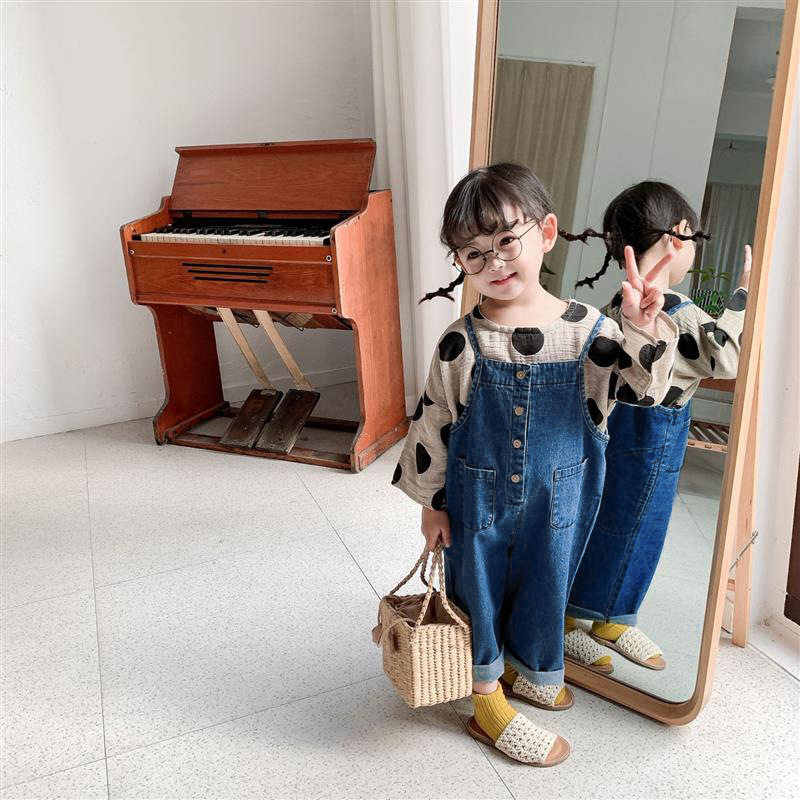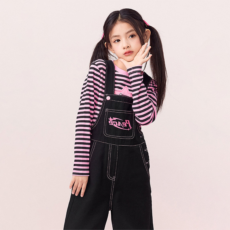 INSbobo女童牛仔背带裤儿童裤子2025秋季新款男童长裤宝宝休闲裤