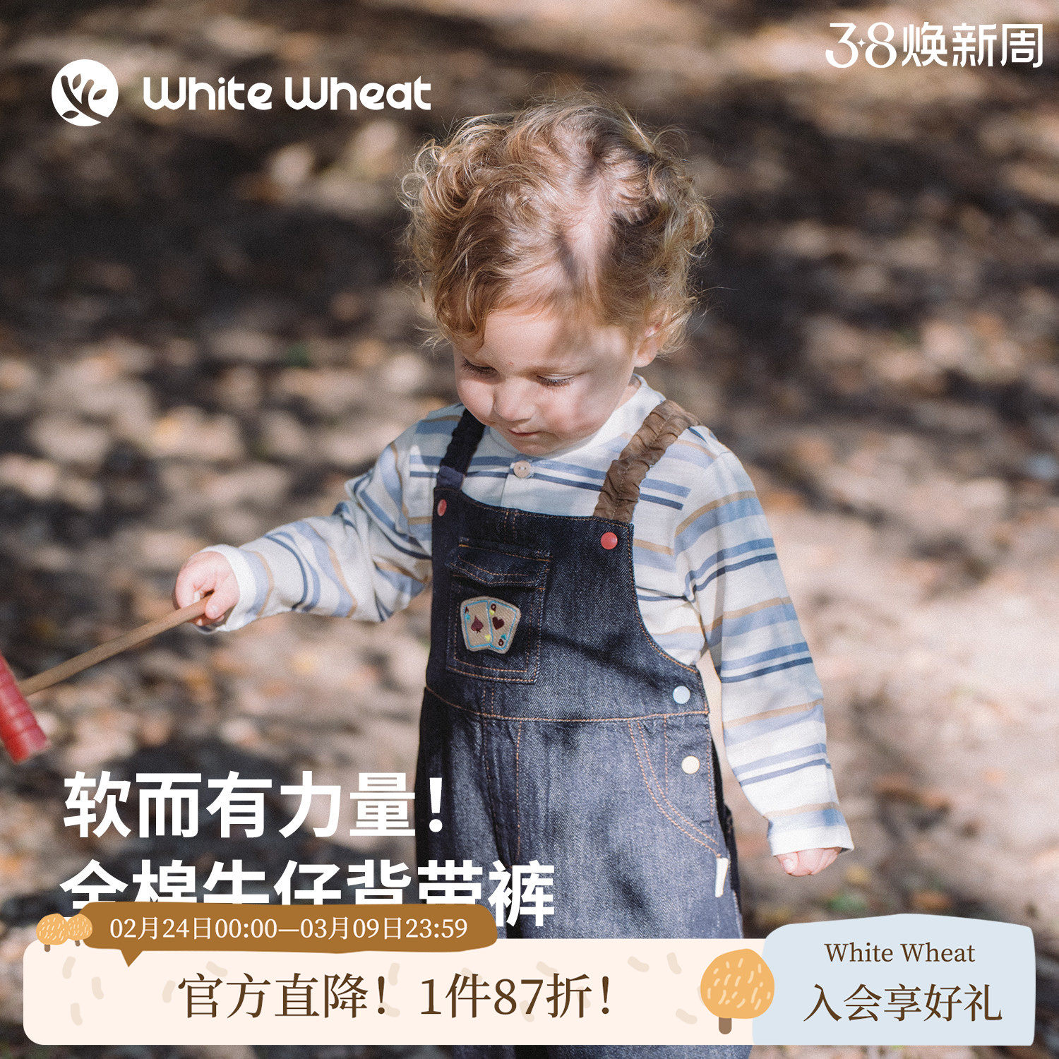whitewheat【高弹肩带】儿童26春季新款裤子男女童纯棉牛仔背带裤