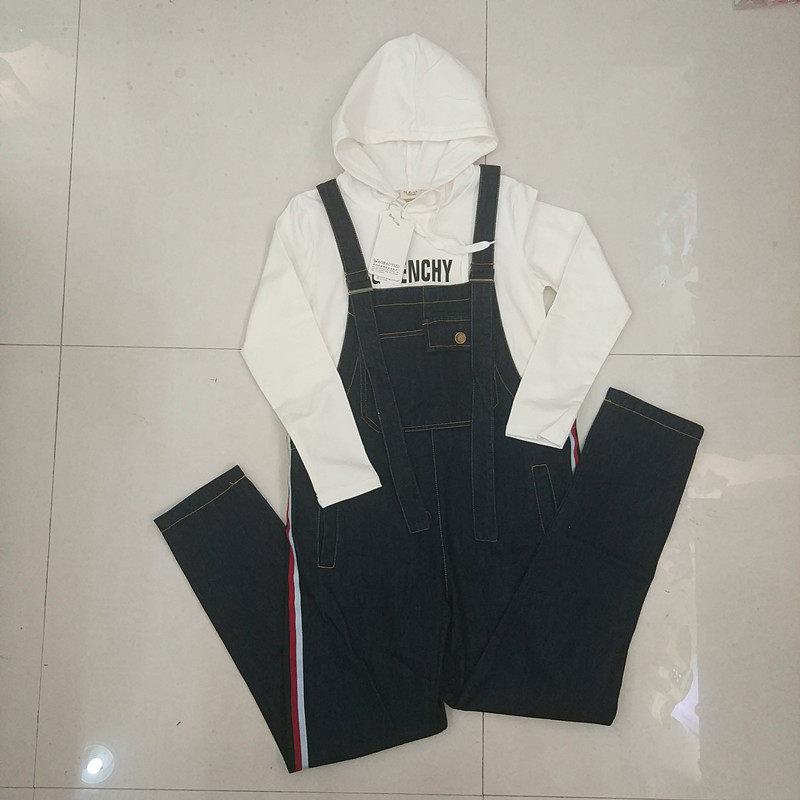 女童牛仔背带裤秋装2021春款儿童连体裤套装大童初高中生吊带裤子