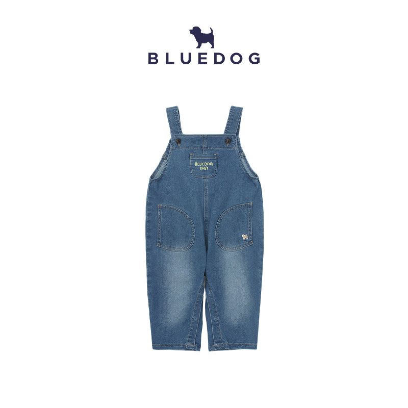 Mikihouse小黑熊徽章连体裤男童女童牛仔背带裤休闲裤Double_B