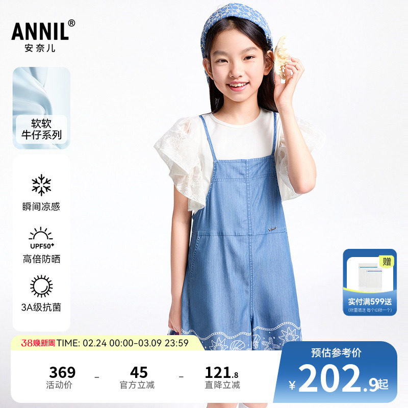 【商场同款】安奈儿童装女童牛仔背带裤2025夏款UPF50防晒裙凉感