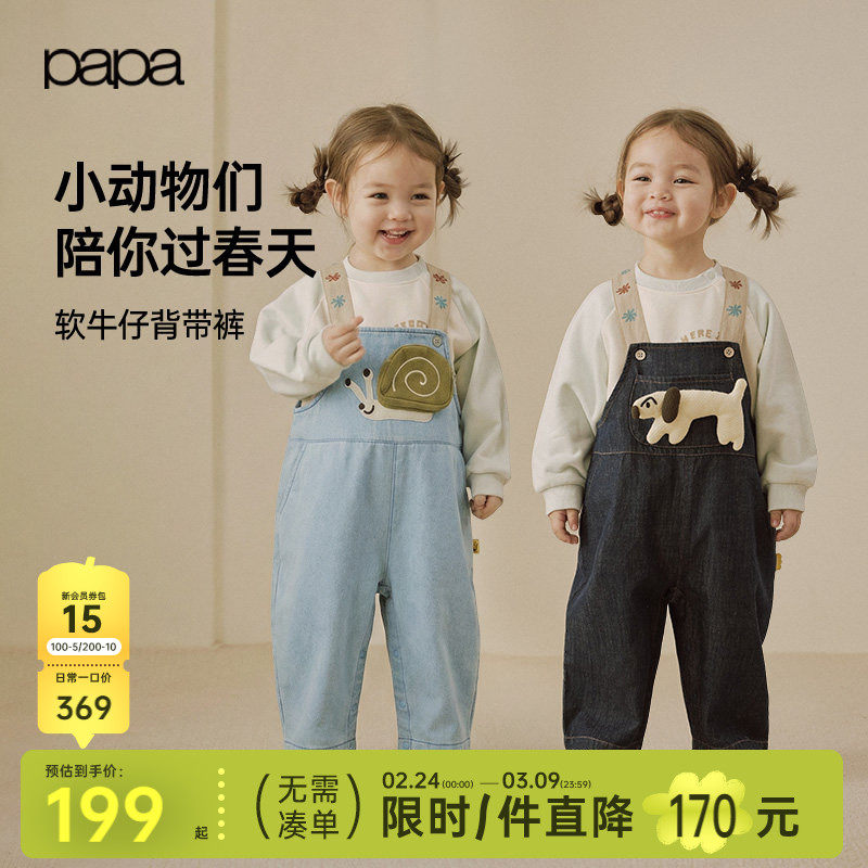 【新品】papa爬爬春季宝宝牛仔背带裤子儿童男女童百搭可爱2026