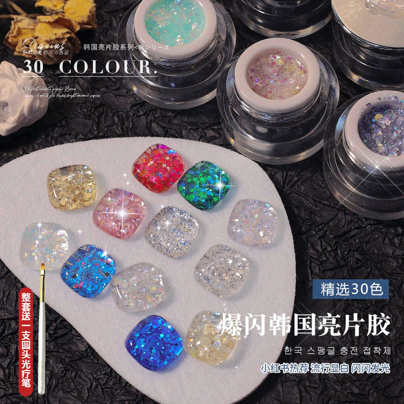 极速韩国b亮片罐装指甲油胶 美甲爆闪2021新款璀璨闪片光疗胶 美