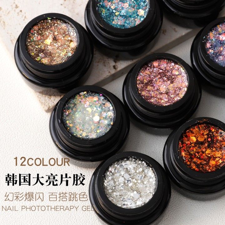 网红爆闪幻彩色韩国大亮片光疗指甲油胶美甲店专用超闪碎钻铂金胶
