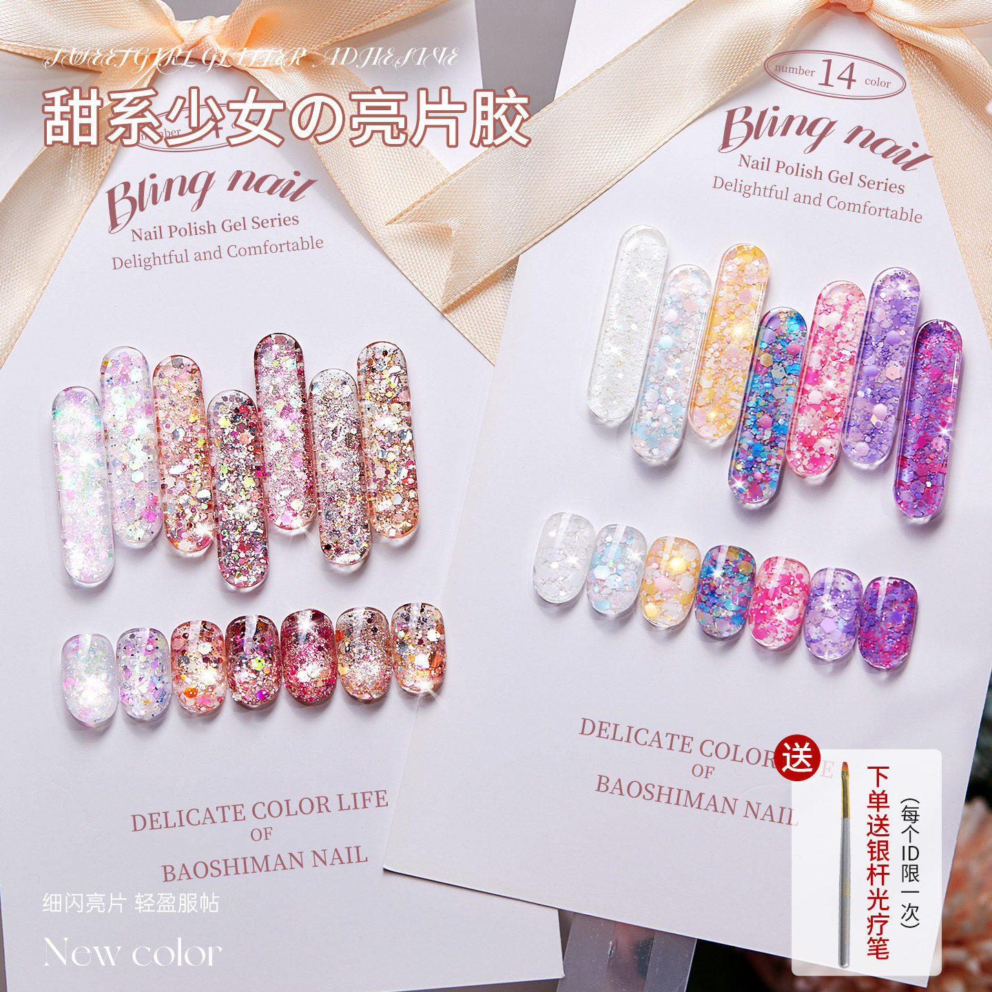 美甲大亮片胶韩国幻彩超闪百搭显白光疗指甲油胶爆闪网红渐变延长