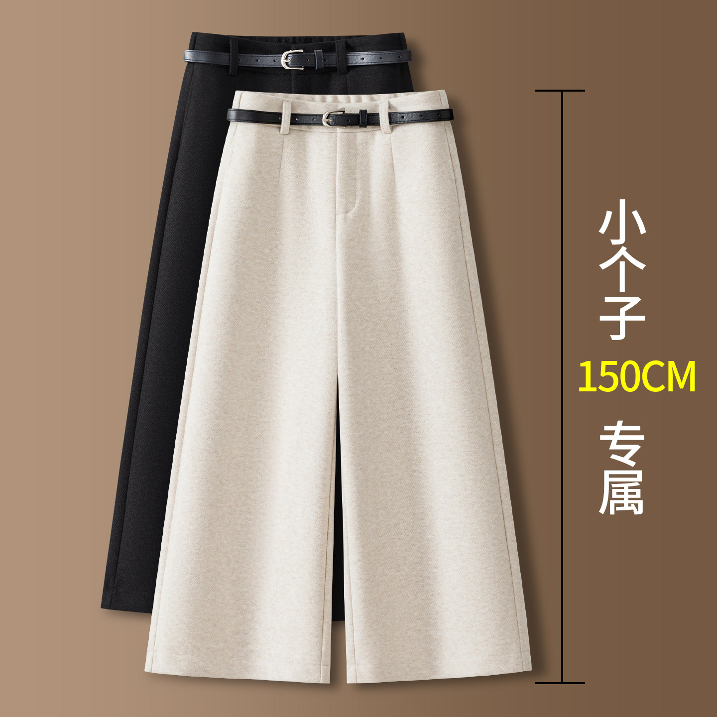 小个子咖色羊毛呢阔腿裤女秋冬季2025八分羊绒裤子九分加绒直筒裤
