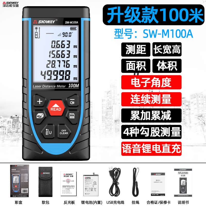 深达威SW-Q80高精度激光测距仪 手持充电红外线电子尺面积测量仪