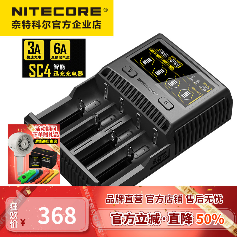 NITECORE奈特科尔SC4四槽智能快充USB输出18650锂电池充电器