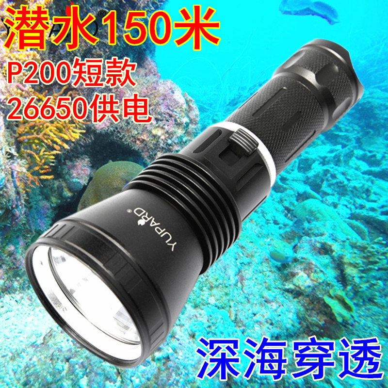 P200潜水手电筒26650水下白黄光专业抓鱼超亮P70强光P90防水赶海