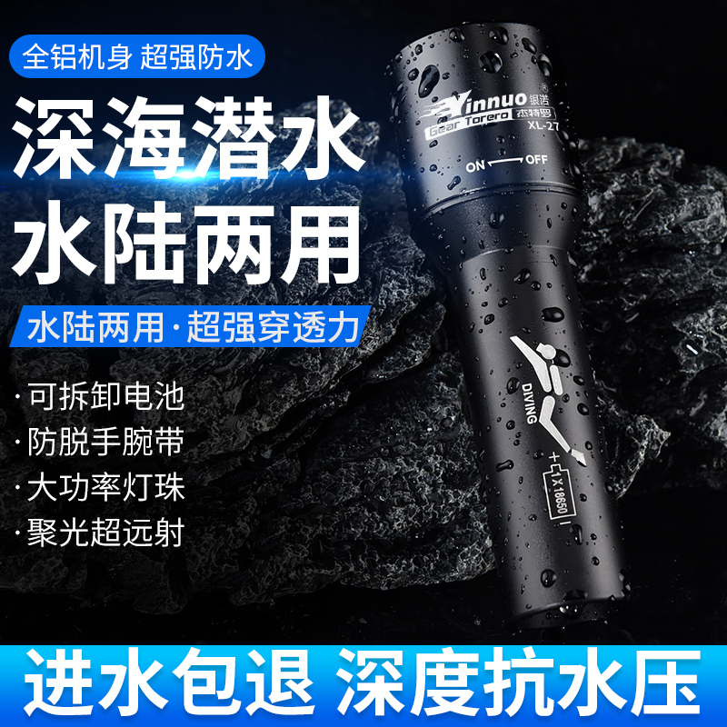 银诺专业潜水手电筒充电水下磁控开关强光防水专用超亮赶海户外灯
