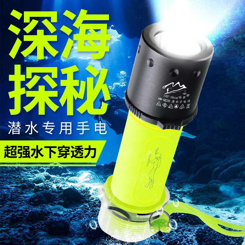 哈拿潜水手电筒强光充电水下摄影补光灯多功能超亮防水户外照明灯