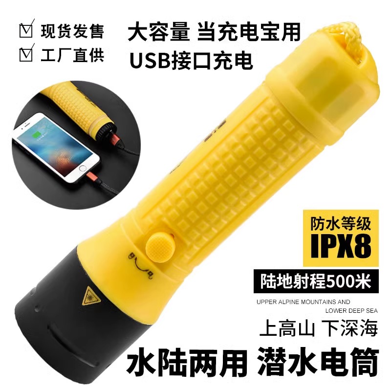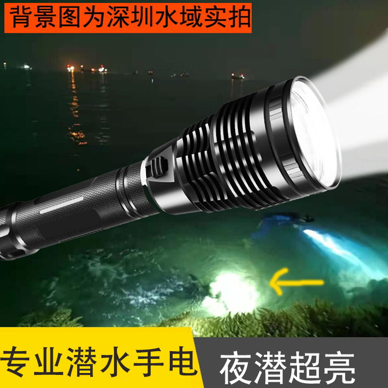 水陆两用潜水手电筒可充电强光led定焦超亮远射聚光深潜50米防水