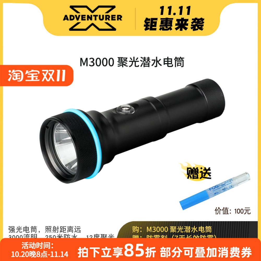 X-ADVENTURER 探险家 M3000 200米深防水超亮流明强光潜水手电筒