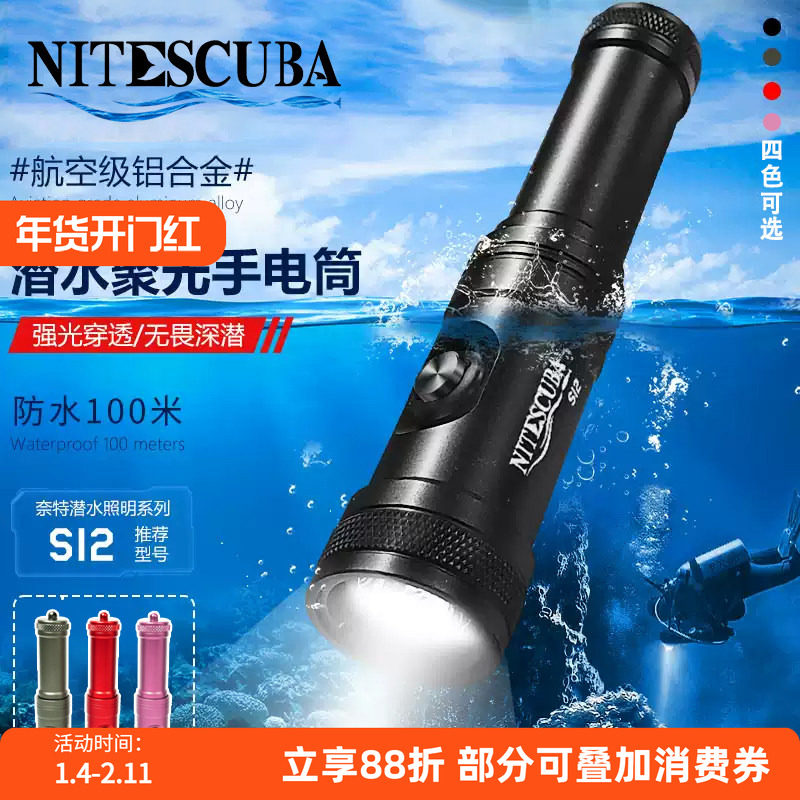 Nitescuba奈特 S12潜水聚光手电筒1200流明夜潜聚光灯补光照明灯
