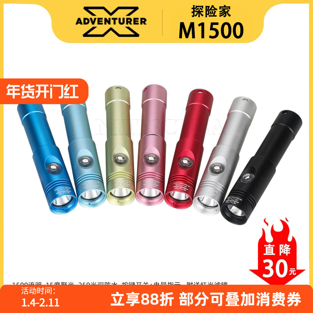 X-ADVENTURER探险家M1500流明深夜潜水手电筒M1200升级250米防水