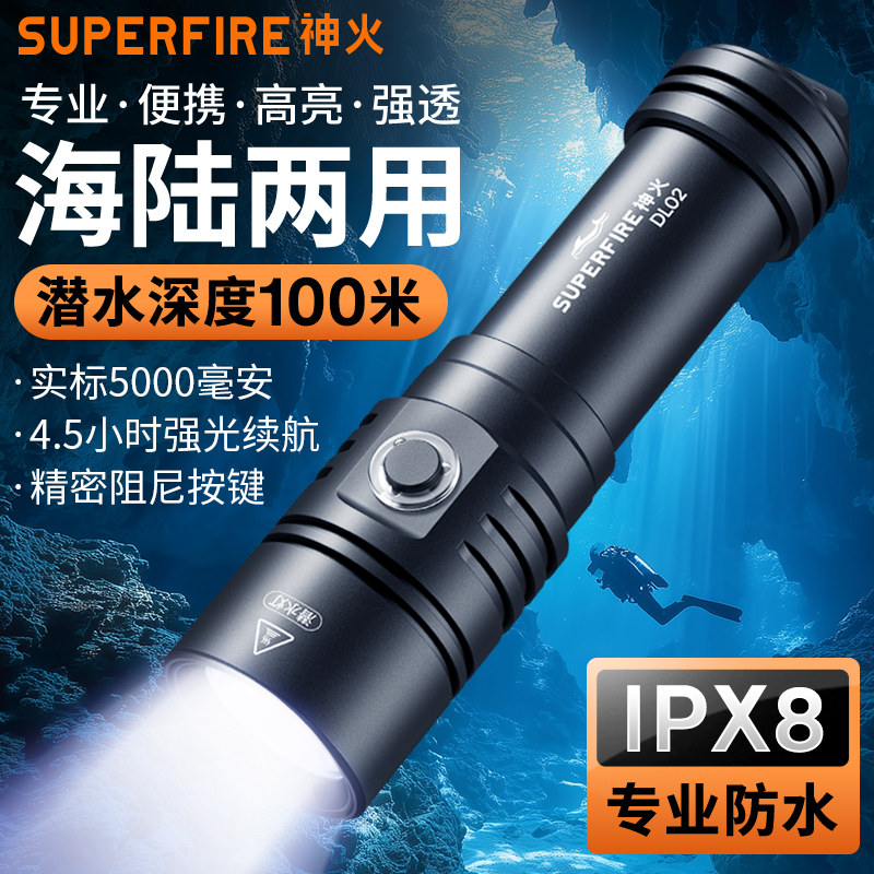 神火潜水手电筒专业强光远射超亮超长续航深潜专用抓鱼赶海充电式