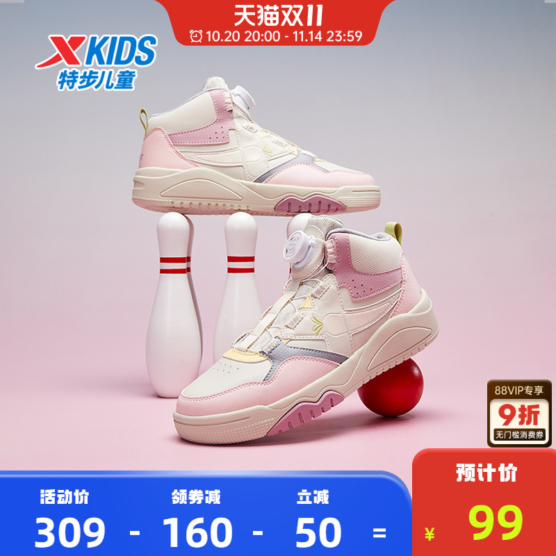 特步儿童2025秋冬款女童旋转扣板鞋运动鞋中大童童鞋休闲女生鞋子