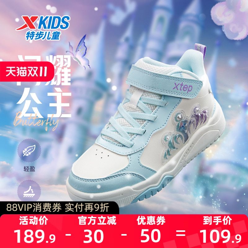 特步童鞋秋冬款儿童板鞋女生公主鞋女童运动鞋小童防滑耐磨休闲鞋