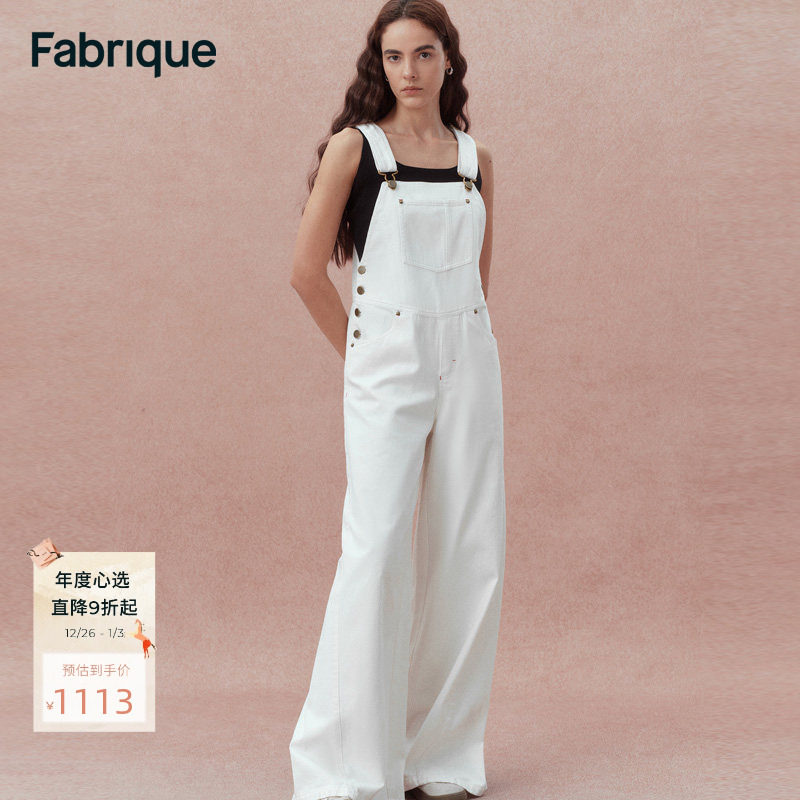 【华晨宇同款】Fabrique 牛乳白纯棉牛仔背带裤工装直筒阔腿裤女