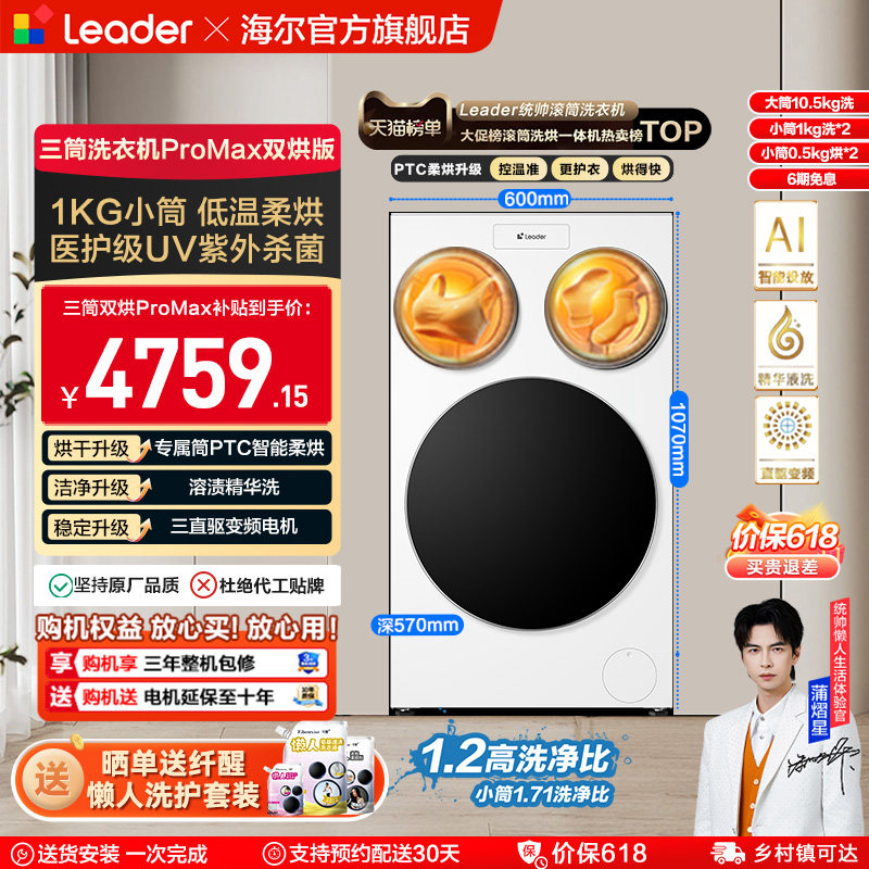 海尔智家统帅Leader三筒懒人洗衣机ProMax滚筒家用全自动三桶