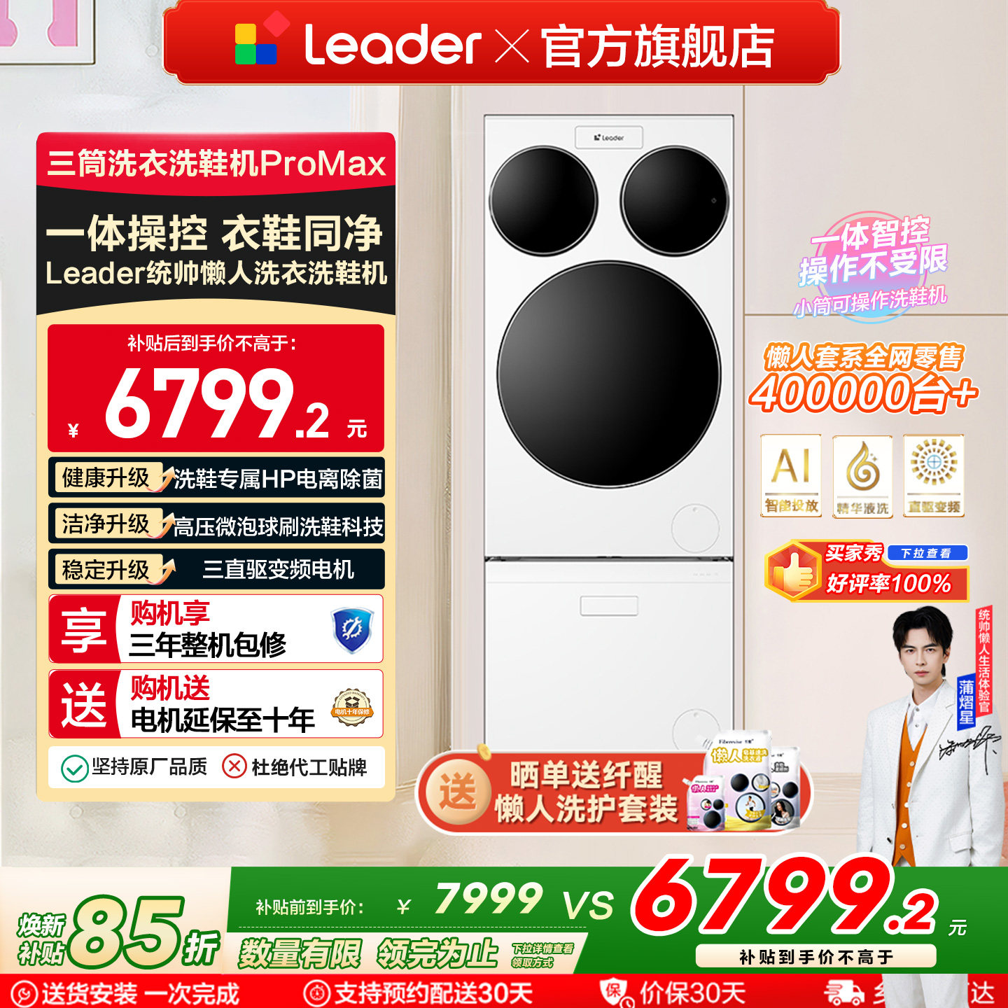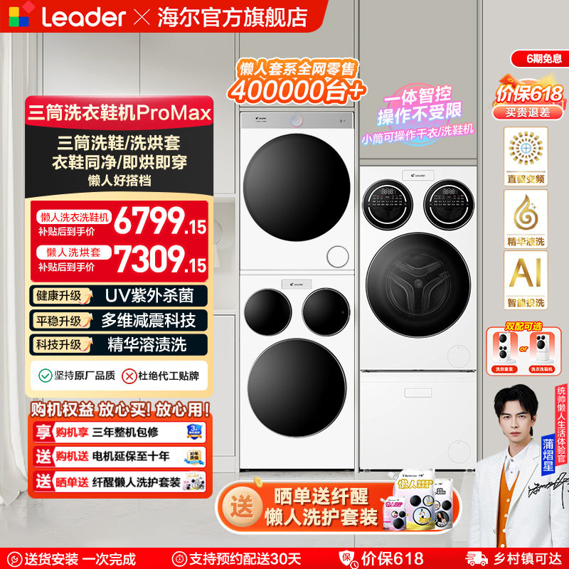 海尔出品统帅三筒懒人分区洗衣机洗鞋机洗烘套装三桶滚筒ProMax