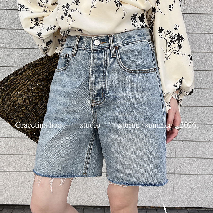 GRACETINA HOO-法式复古一排扣门襟简约高质感通勤牛仔短裤NB9175