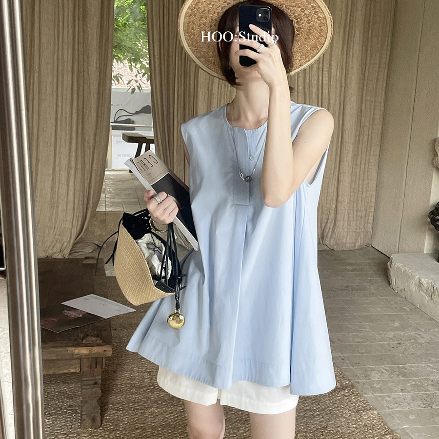GRACETINA HOO-滴型V领多绗线简约廓形通勤百搭无袖A摆衬衫CSA897