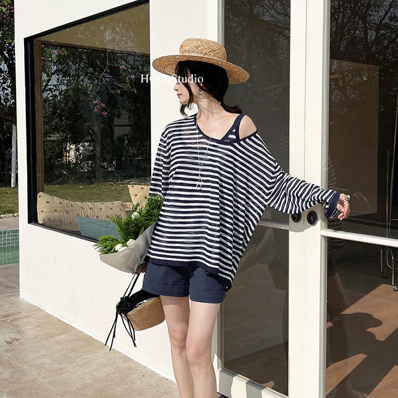 GRACETINA HOO-法式斜肩一字领两穿宽松蝙蝠袖斗篷慵长袖TB994
