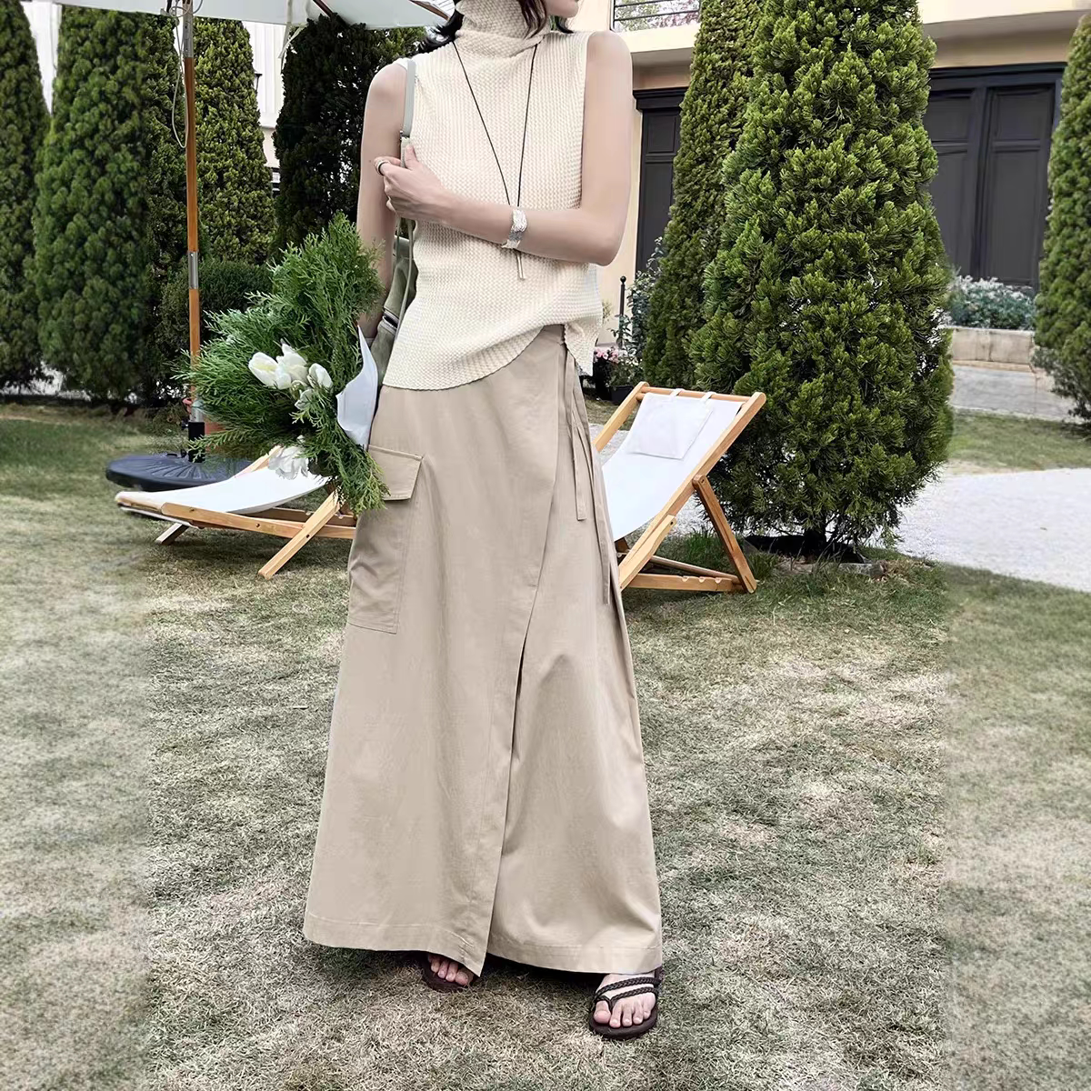 GRACETINA HOO|法式简约工装风通勤|一片式侧绑带A摆半身裙女春