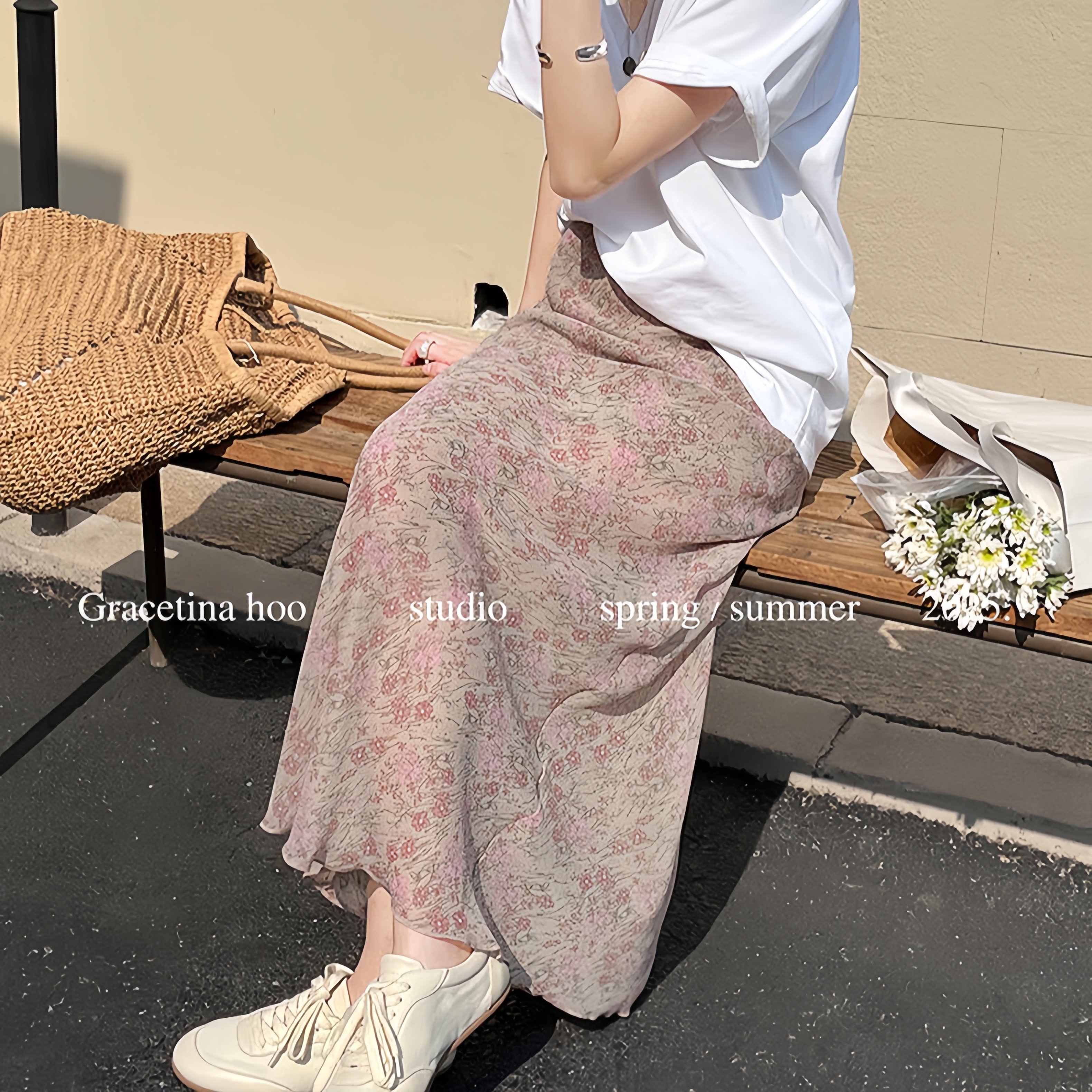 GRACETINA HOO|法式清新减龄通勤|轻薄碎花小鱼尾直筒半裙女夏