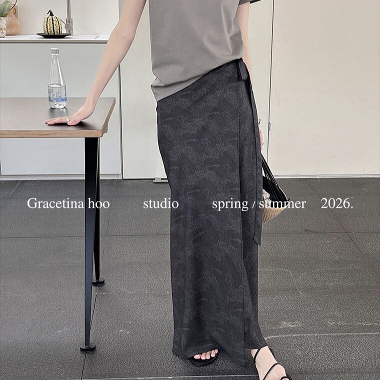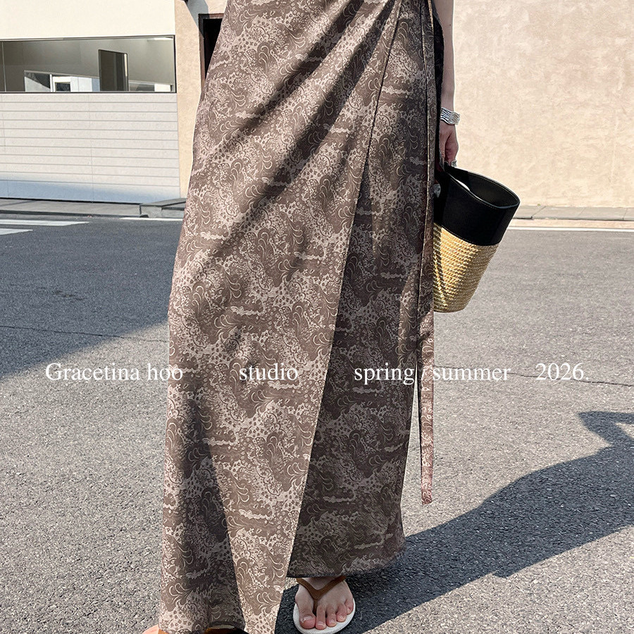 GRACETINA HOO|法式简约高级感通勤|印花围裹绑带半身裙女春