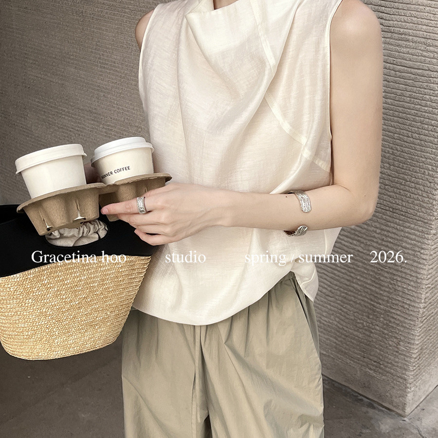 GRACETINA HOO-59天丝8亚麻法式天丝亚麻荡领简约气质背心CSA859