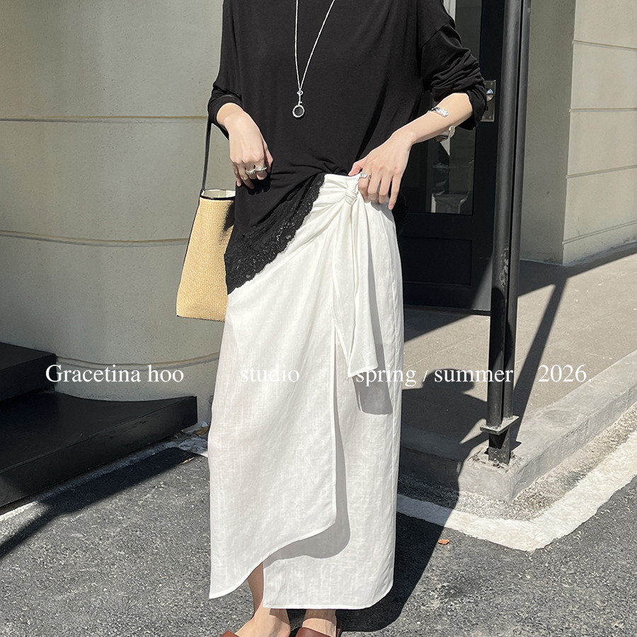 GRACETINA HOO法式系带天丝亚麻高智感半身裙(白色有里布)BQA278