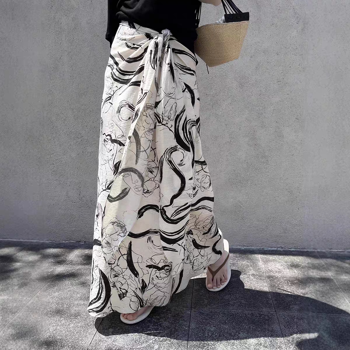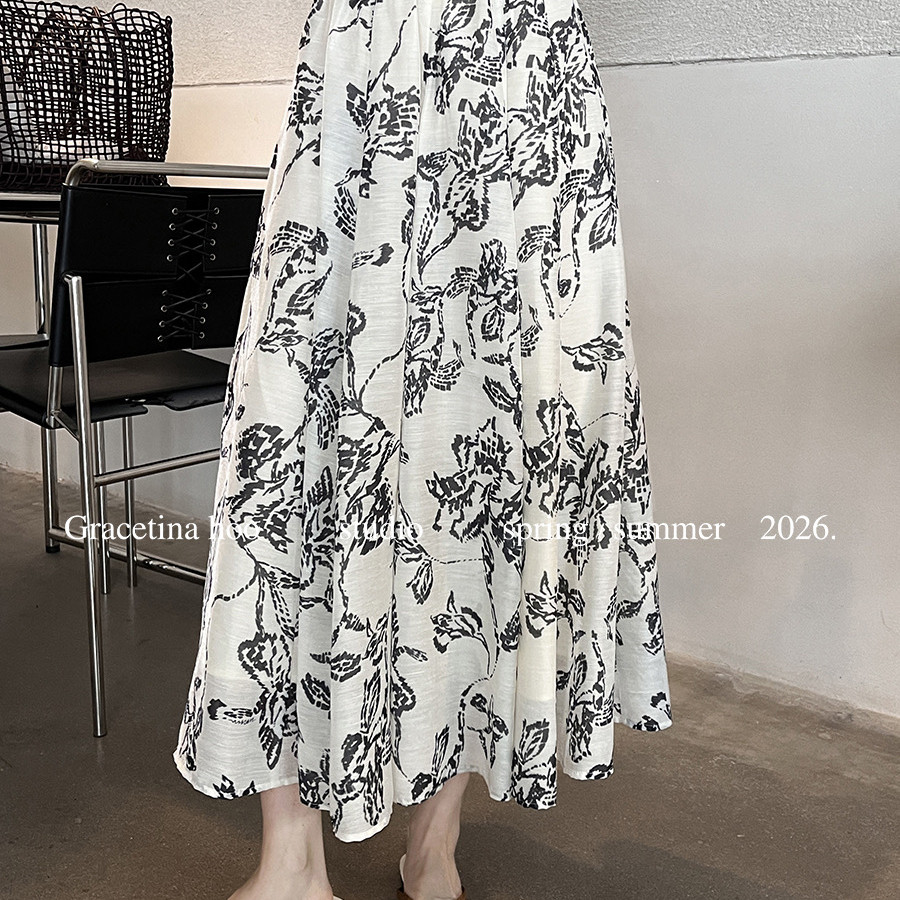 GRACETINA HOO-定制印花南法假日水墨印花浪漫慵懒半身裙BQA6083