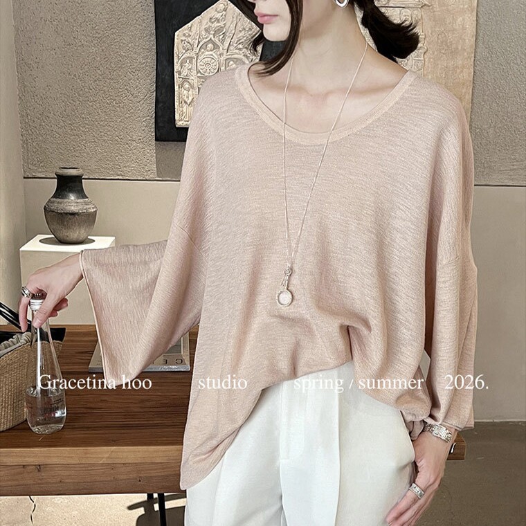 GRACETINA HOO|法式简约高智感通勤|U领落肩长袖针织衫女春夏